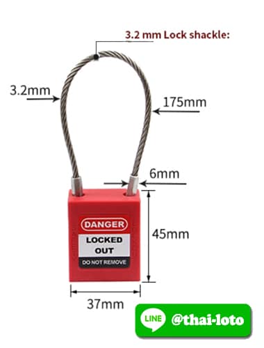 | สินค้า | กุญแจนิรภัย ก้านลวด 3.2 มม. Safety Padlock Steel cable |